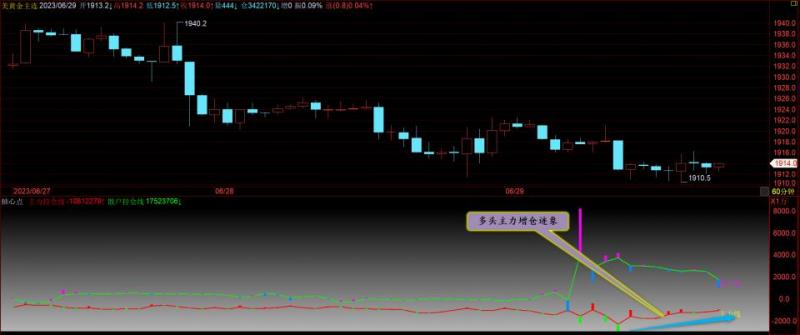 通过对黄金小时图解析得知,黄金周日虽然出现了绝地反击信号之所以没有出现大幅反弹动作主要是因为,我们从下方的附图可以清楚的看到多头主力的增仓力度不够,从早盘到目前为止行情依然是在1905附近震荡徘徊在下方1902一线我们看到下午时间段有部分主力资金有小幅增仓迹象,正如我们早盘所说在1902一线做W底的可能性比较大一点,但是也不排除进一步的下探到1890一线,短期在操作上我们继续关注上方早盘提起的3个压力位,在操作上我们继续高空低多思路,具体建议盘中通知