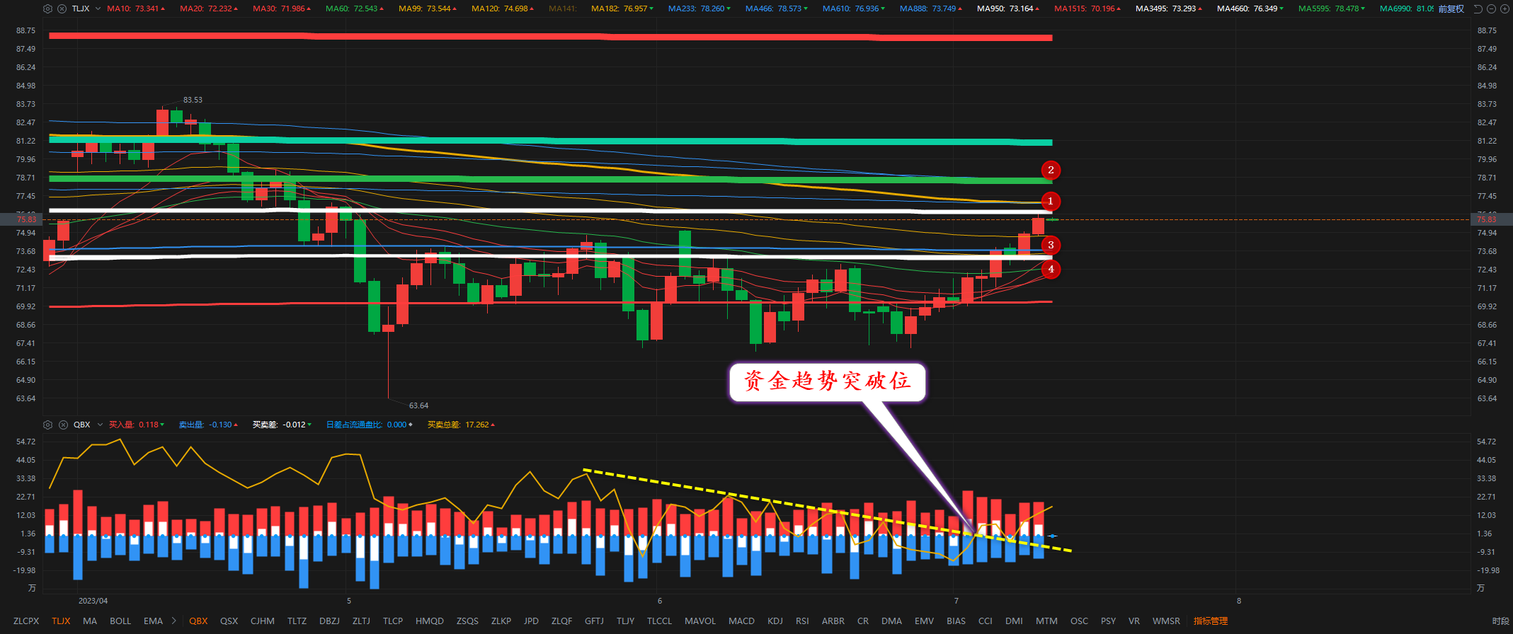 原油74.60和73.30分别做多,止损各70点,止盈各300点。