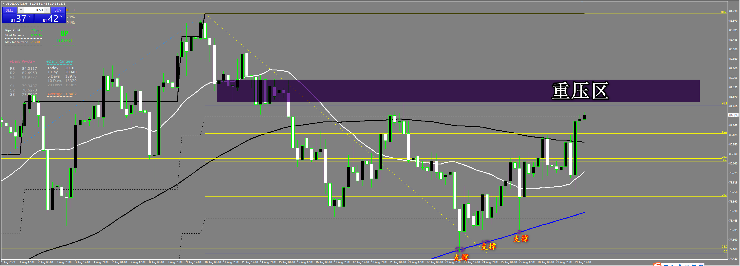 原油81.90和82.40分别做空,止损各70点,止盈各200点;