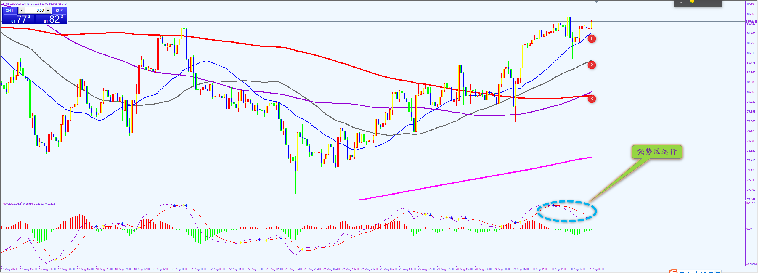 原油81.40和80.90以及80.00分别做多,止损各70点,止盈各300点。