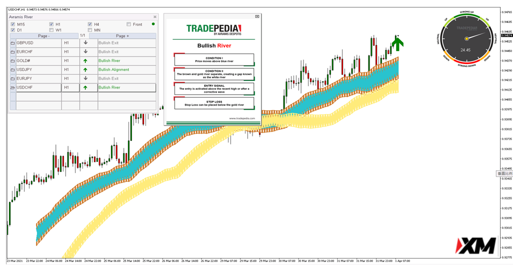 Avramis River是一款全智能根据系统条件实时自动筛选交易信号的交易系统,让交易者随时随地只要在电脑前打开交易软件,利用自动计算筛选功能在自己偏好的交易品种上扫描交易信号,周期为M15 H1 H4 D1 W1 MN(可自定义)。