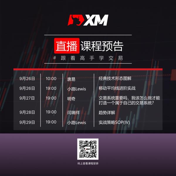 9月26日(下周一),北京时间19:00,Lewis Huang老师将通过多条均线设立网状趋势线,教您如何找到趋势发动点。