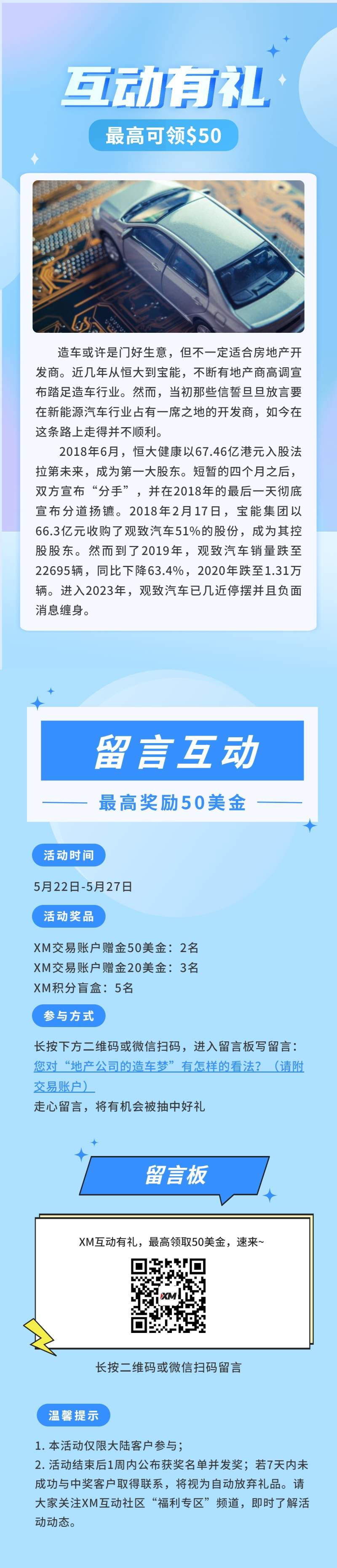 微信扫一扫海报最下方的二维码,参与XM互动留言,最高领取$50赠金,速来~
