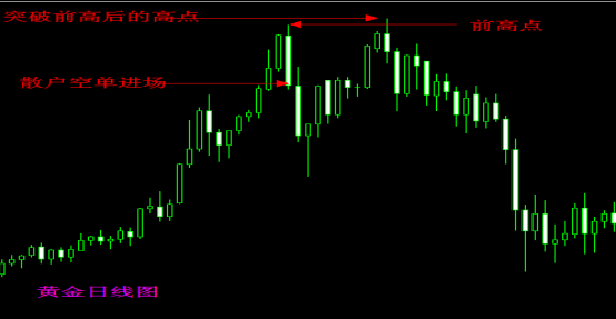 当市场主力突破前高点时,散户止损,平保,反方向突破进场都亏损后,此时才是真正的主力改变方向之时。
