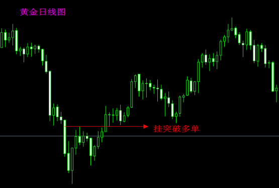 遇到这样的情况,我们只有耐心等待,挂上buy stop 限价止损单。相信市场在突破的那一瞬间,会给你意外的惊喜。