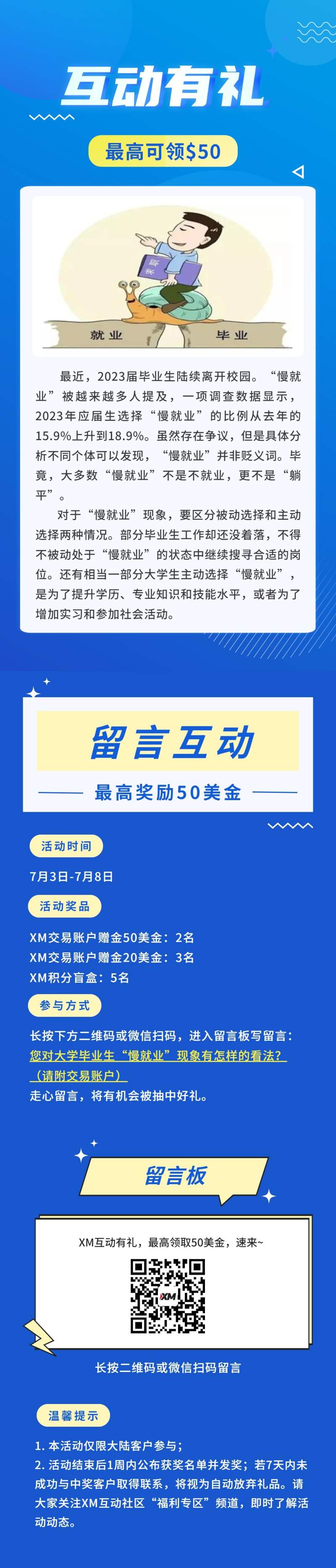 微信扫一扫海报最下方的二维码,参与XM互动留言,最高领取$50赠金,速来~