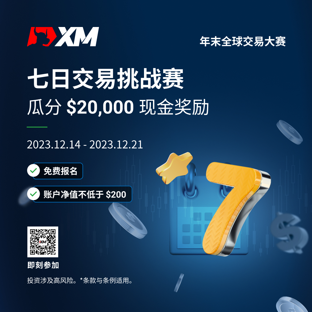 新一轮的七日交易挑战赛已经开启。 2023年12月14日 至 2023年12月21日期间参赛,与全球交易者瓜分 $20,000现金奖励。
