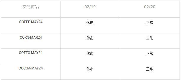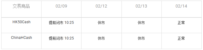 由于公共假日即将到来,部分商品的交易时间将于2024年2月9日 – 19日期间受到影响。
