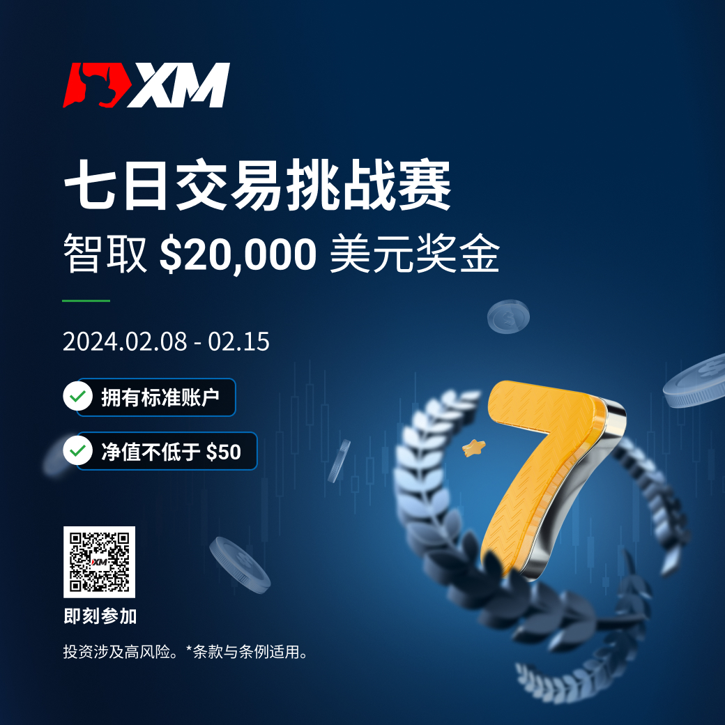 2024年02月08日 至 02月15日期间,参加为期一周的七日交易挑战赛,与全球交易员一较高下,瓜分总值 $20,000 美元 现金奖!