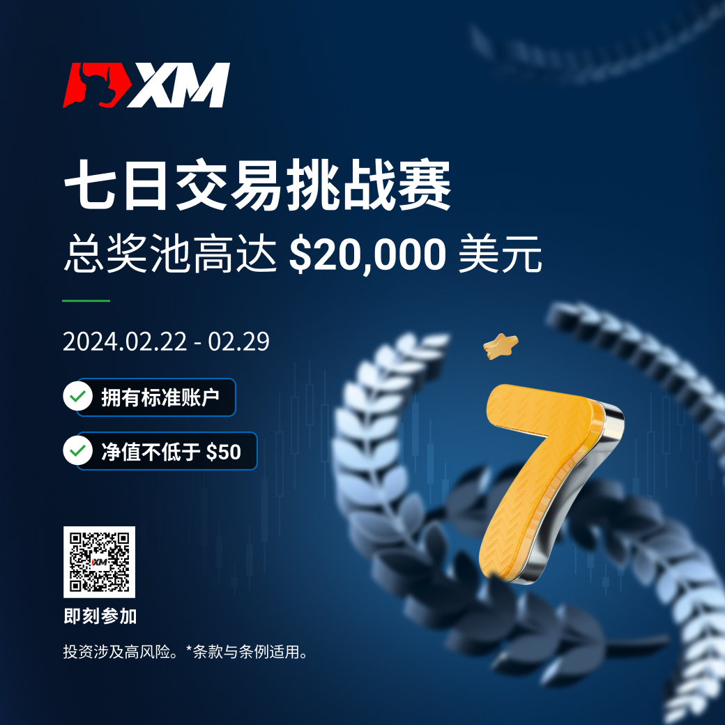 2024年02月22日 至 02月29日 期间,参加为期一周的七日交易挑战赛,与全球交易员一较高下,瓜分总值 $20,000 美元 现金奖励!