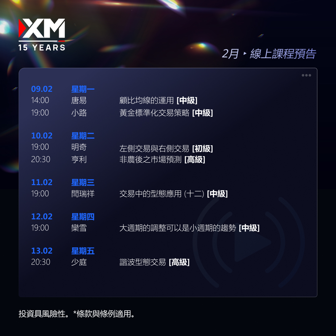 🔥 每周一至周五,1+小时实战内容, XM中文直播课堂带你拆解行情节奏,学习实用交易策略与关键出场逻辑,稳步提升交易胜率!