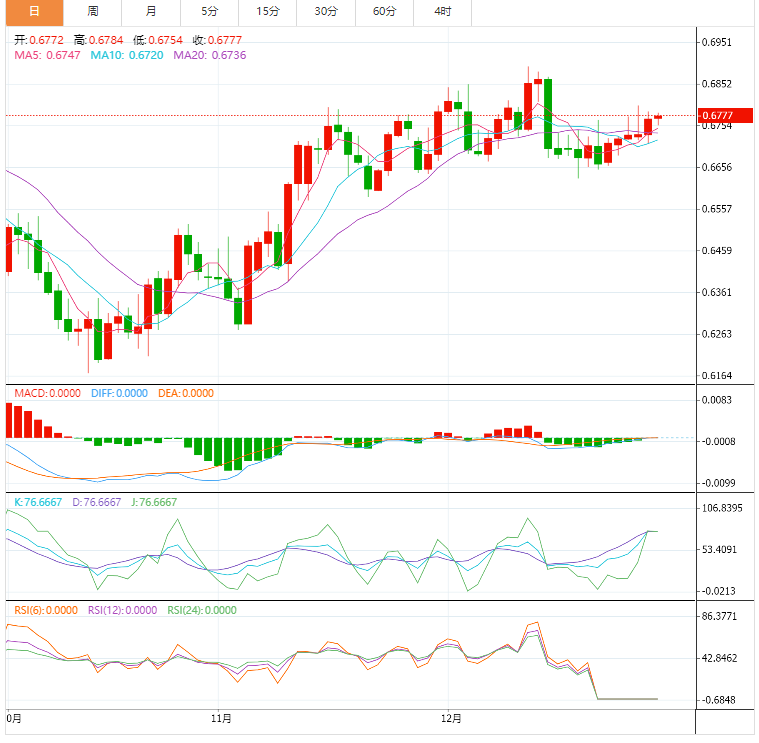 澳元兑美元在周五早盘从短期向下倾斜的阻力线撤退后,结束了两天的上升趋势。即便如此,疲弱的MACD指标和市场的假日情绪限制了澳元对的下行,因此截至发稿时,报价仍在0.6770附近保持温和卖出价。