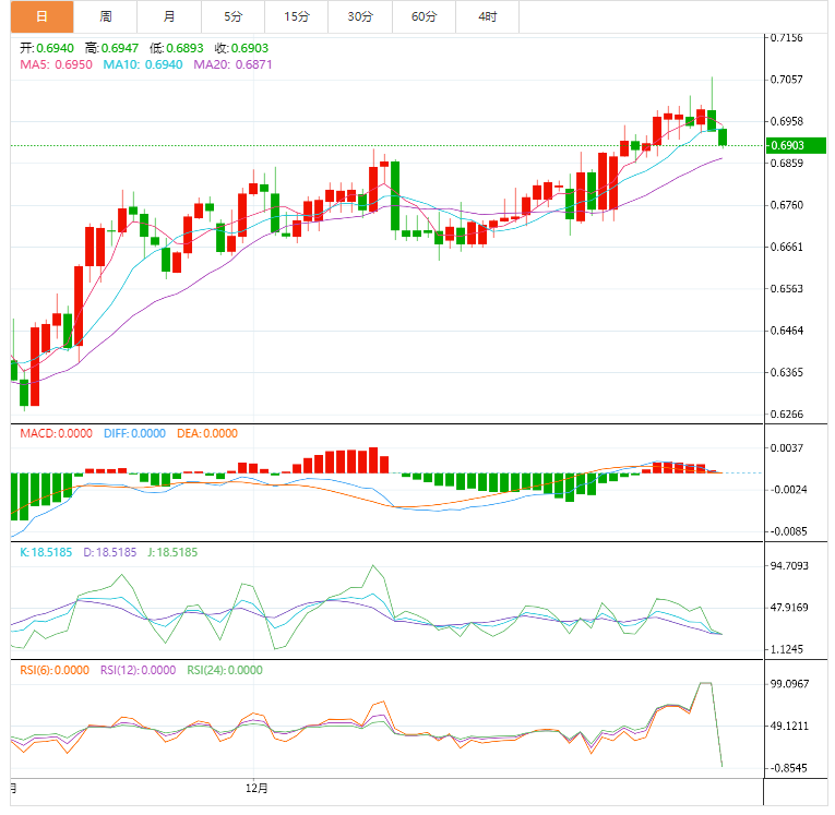 澳元兑美元在刷新多个月高点后连续第二天处于劣势,周四早盘空头突破0.6900关口,澳元兑美元下跌0.5%。
