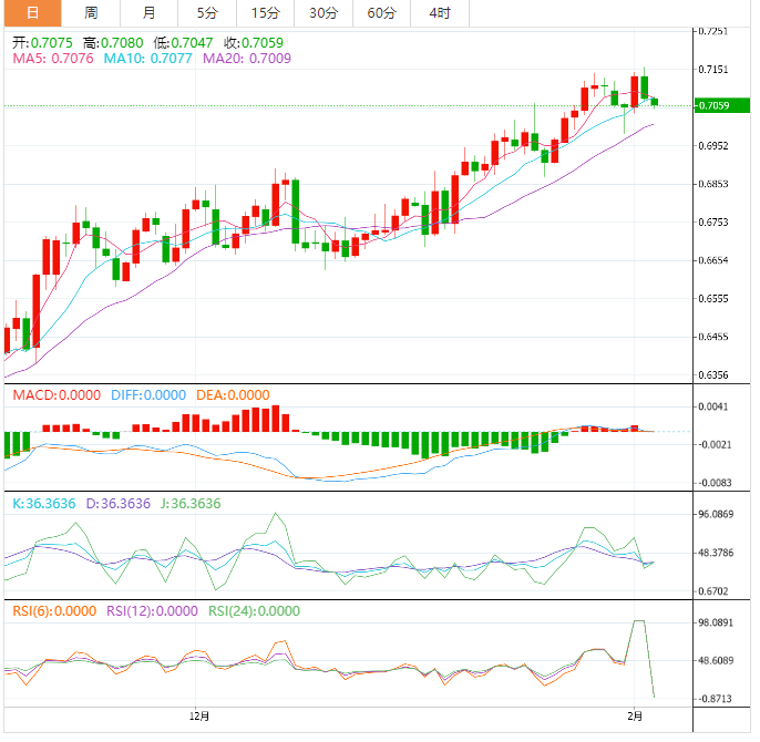 今天预期的交易区间在0.6980支撑位和0.7100阻力位之间