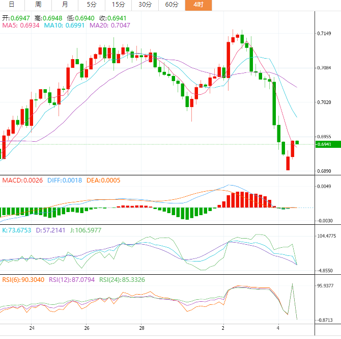 澳元兑美元在四小时上升通道图表模式被击穿后出现了大幅下跌。图表模式显示出在有限区域上升之后的熊市逆转。在大幅下跌之后,澳元资产试图反弹,并可能在0.7000心理阻力位附近测试上升通道的崩溃。