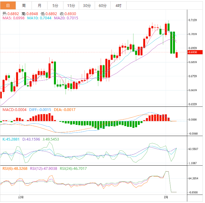 今天预期的交易区间在0.6850支撑位和0.6980阻力位之间。