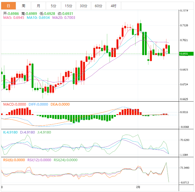 或者,如果日收盘价超过21日移动均线,即0.7000左右的数字,可以推动澳元/美元价格走向1月底接近0.7065的波动高点,然后突出0.7100门槛作为关键阻力位。