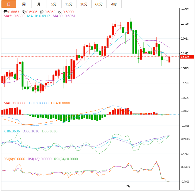 周一欧市盘前,澳元兑美元触及一轮阻力位0.6900。由于投资者对美中紧张局势以及朝鲜在日本专属经济区(EEZ)附近发射三枚导弹所带来的不确定性不以为然,澳元资产已经走强。