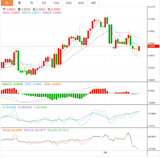 今天预期的交易区间在0.6810支撑位和0.6925阻力位之间。