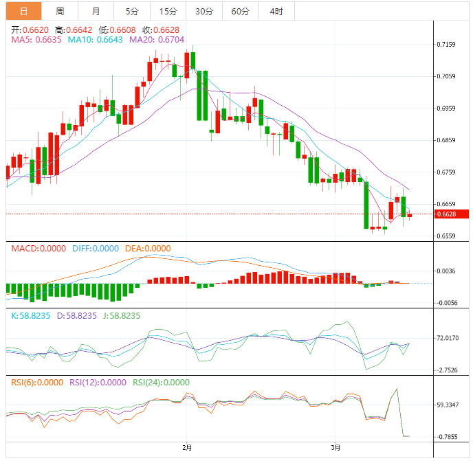 由于澳大利亚统计局公布了乐观的就业数据,澳元兑美元扩大了其复苏范围,至0.6640附近。澳大利亚经济2月份新增64.6万个就业岗位,高于预期的48.5万个。今年1月,澳大利亚经济报告裁员115000人。失业率已从先前预计的3.6%和3.7%进一步下调至3.5%。