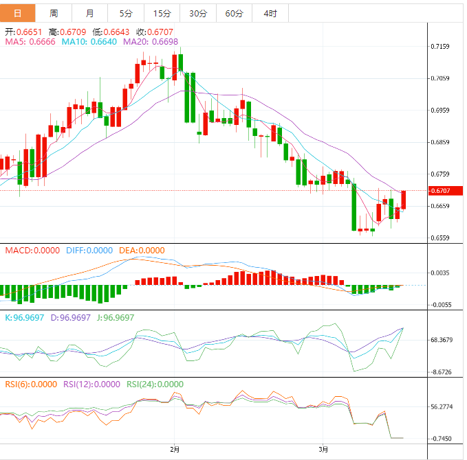 周五,澳元兑美元在东京市场反弹,从0.6660上升至0.6691的新高。下周美联储会议即将召开,市场紧张不安。隔夜,欧洲央行提高了利率,引发了对欧元的下意识抛售,后来反弹并继续顶住阻力。