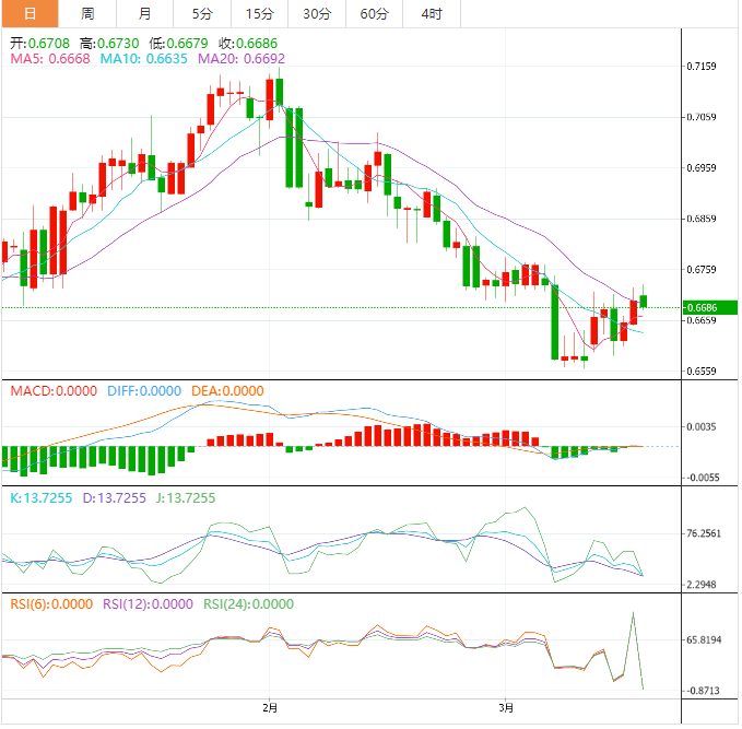 澳元兑美元的风险接近度在亚洲交易早盘走高,但在触及0.6730关口后回落。目前交易没有变化。亚洲盘初,在主要央行针对流动性紧缩采取协调行动的背景下,风险偏好扩大,一些高贝塔系数货币上扬。