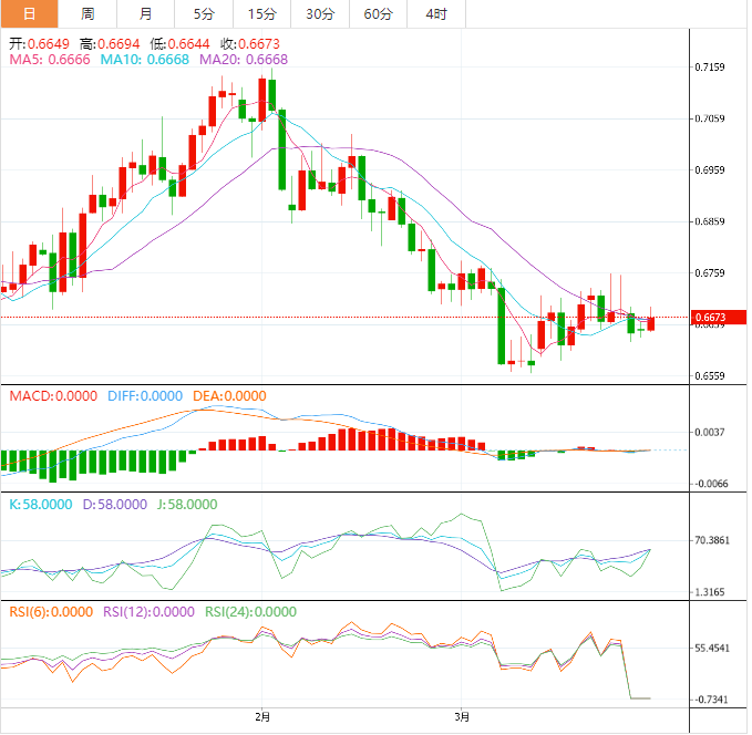 澳元兑美元已大幅突破20期指数移动平均线(EMA) 0.6659,这表明澳元走势强劲。
