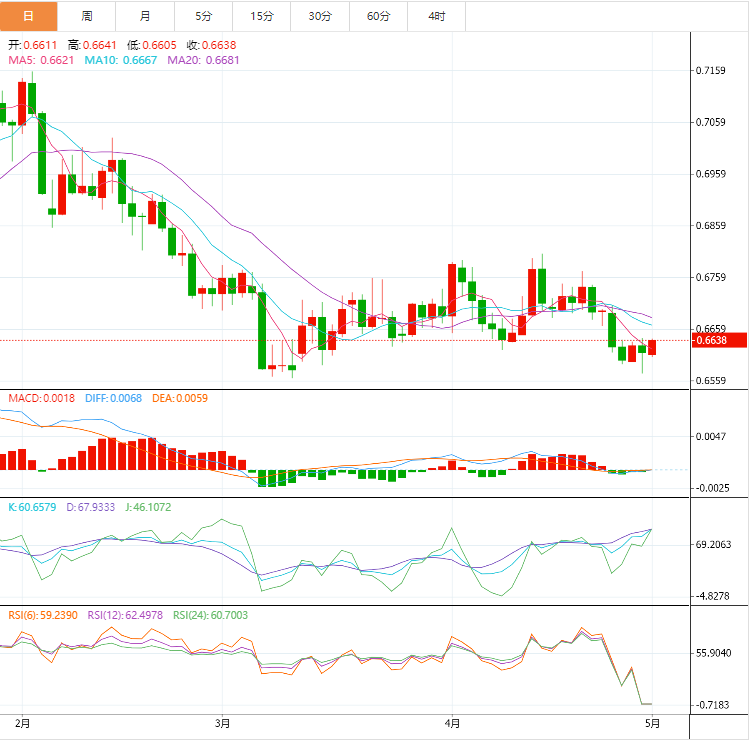 预计今天的交易区间在0.6560支撑位和0.6660阻力位之间。