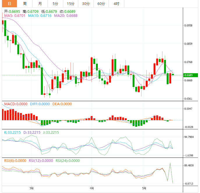 由于澳大利亚央行公布了5月份货币政策会议纪要,澳元兑美元汇率跌破了0.6700的圆形支撑位。澳大利亚央行会议纪要显示,由于通胀前景上升,它决定加息。由于生产率增长疲软、服务业通胀持续高企以及租金上涨快于预期所带来的通胀风险,需要进一步加息。