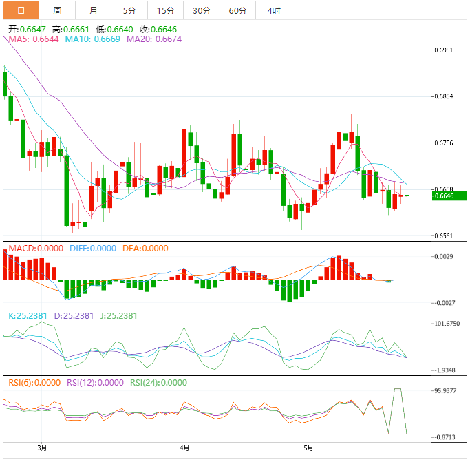 20期指数移动平均线(EMA)位于0.6650,为澳元多头提供了支撑。