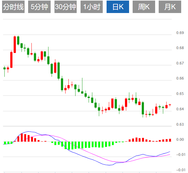 阻力位:0.6444 0.6466 0.6498