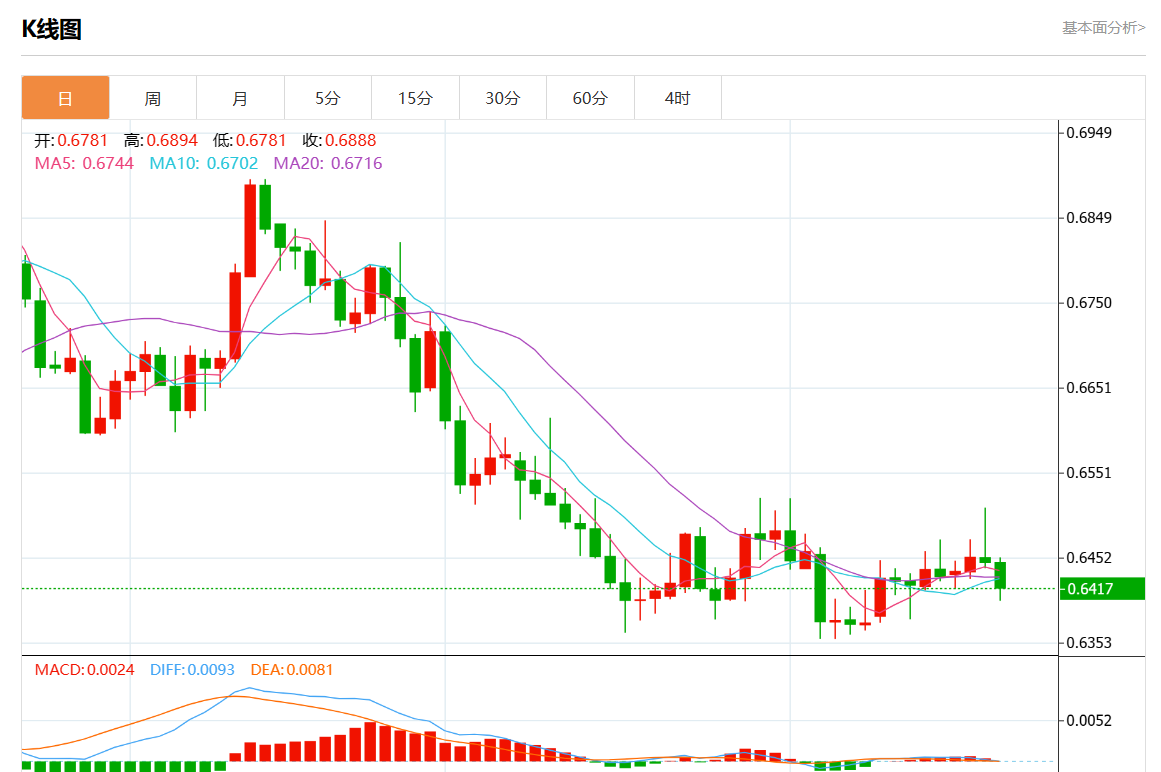 周四盘中,澳元/美元报0.6418,跌幅0.47%。