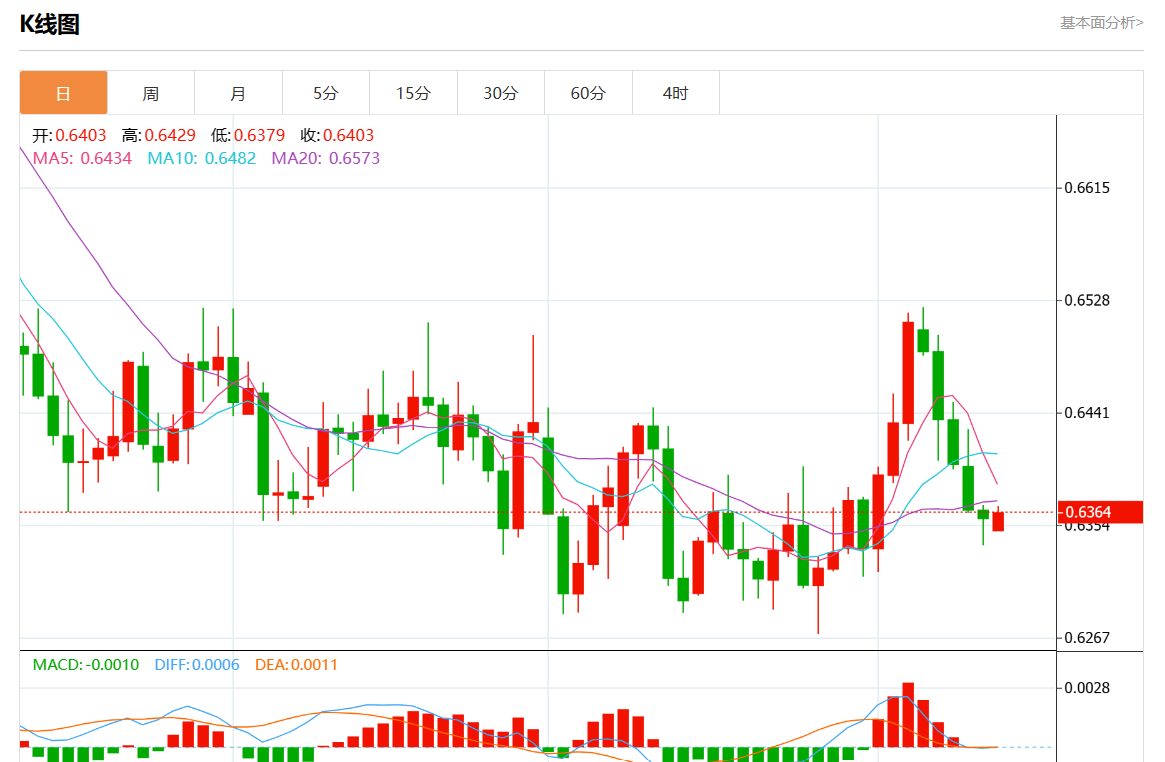 支撑位:0.6410 0.6395 0.6380