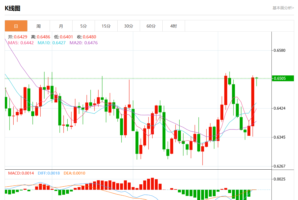 今日分析:在0.6455上方做多头,目标在0.6540和0.6570。