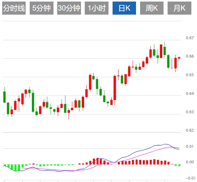 周五亚洲早盘时段,澳元兑美元窄幅震荡于0.6600心理关卡附近。澳大利亚数据弱于预期且中国经济前景悲观打压澳元。澳元兑美元目前交投于0.6607附近,日内上涨0.08%。
