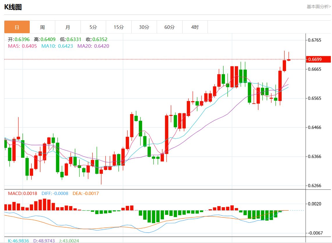 阻力位:0.6670 0.6650 0.6635