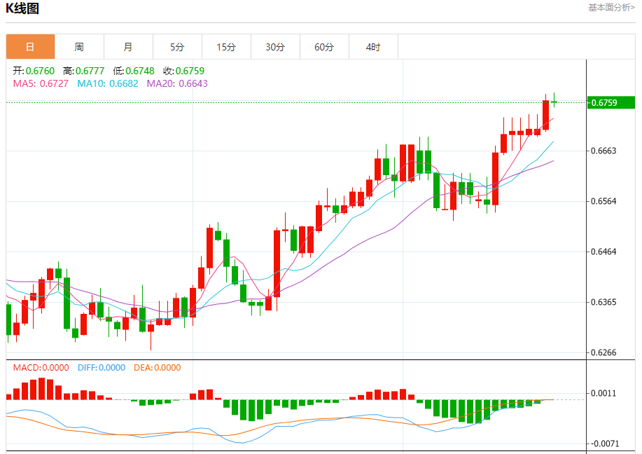 今天的预期交易区间在0.6720支撑和0.6820阻力之间