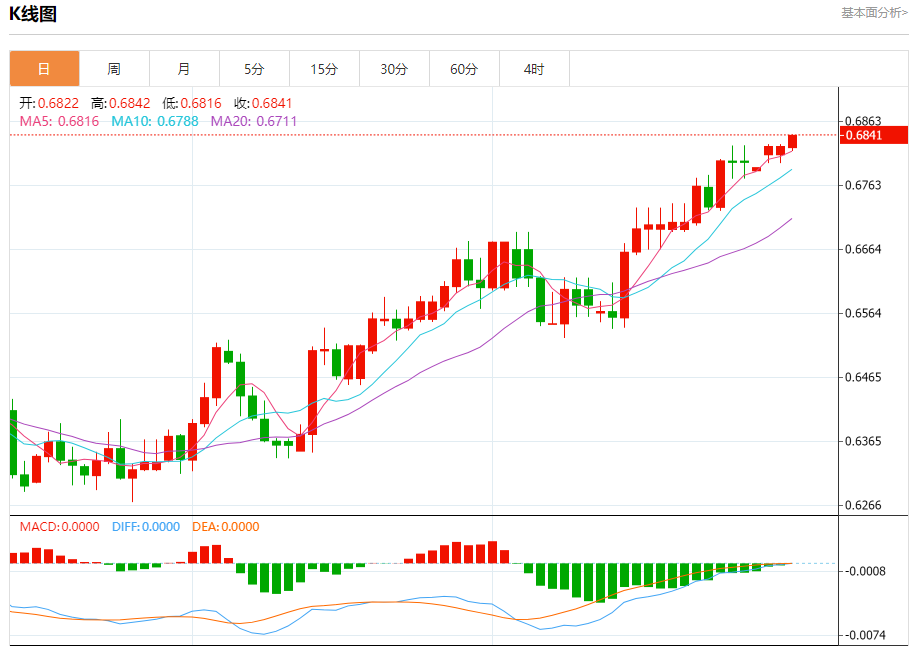 今天的预期交易区间在0.6790支撑和0.6895阻力之间