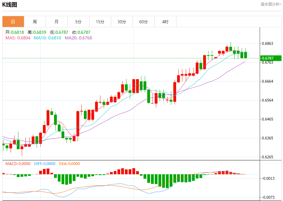 今天的预期交易区间在0.6780支撑和0.6870阻力之间
