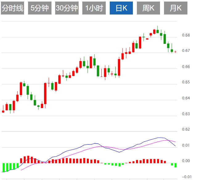 今天预期交易区间在0.6650支撑位和0.6740阻力位之间