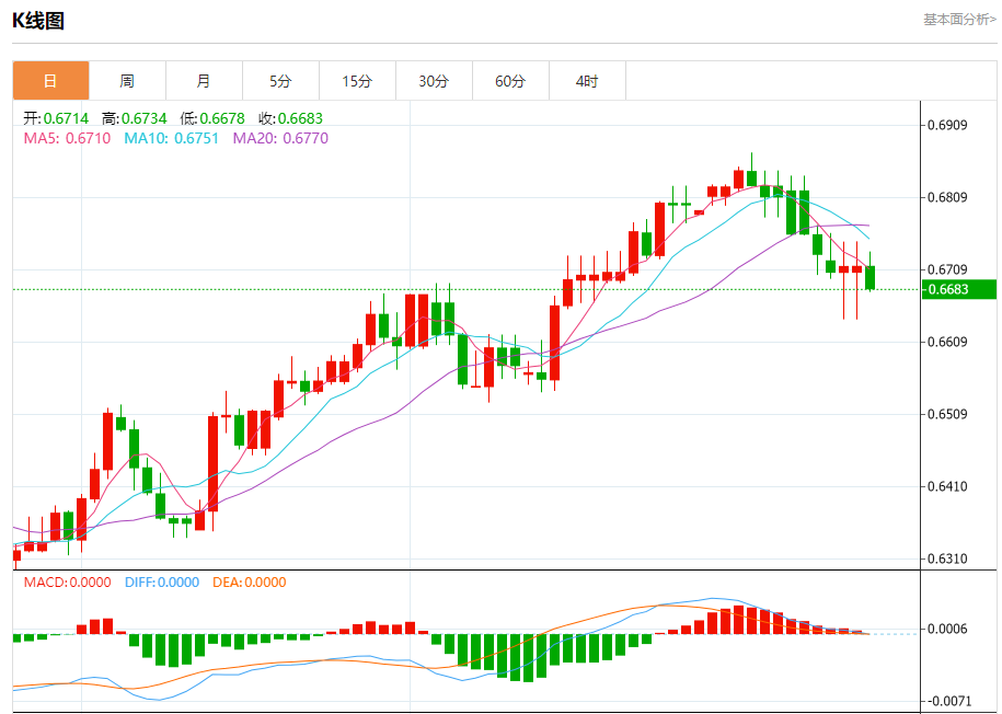 今天的预期交易区间在0.6660支撑和0.6765阻力之间