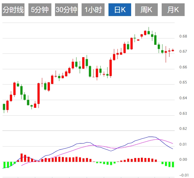 今日预期交易区间在0.6680支撑位和0.6785阻力位之间