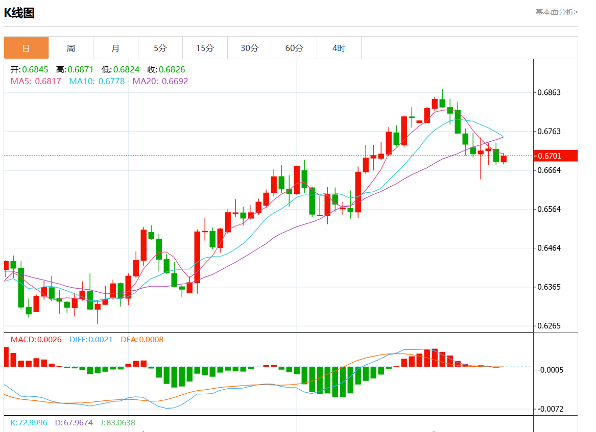 今日分析:在0.6675上方做多头,目标在0.6720和0.6735。