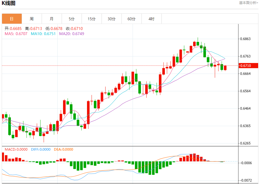 今天的预期交易区间在0.6660支撑和0.6760阻力之间