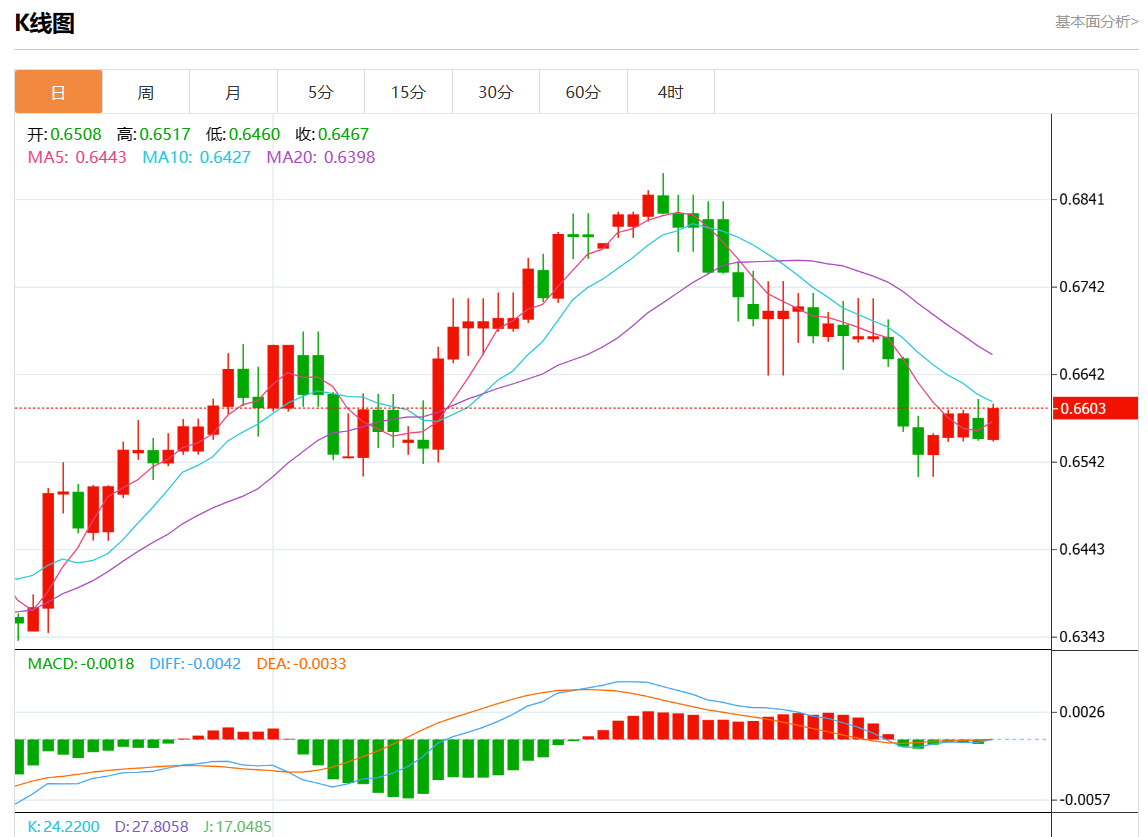 支撑位:0.6645 0.6630 0.6615