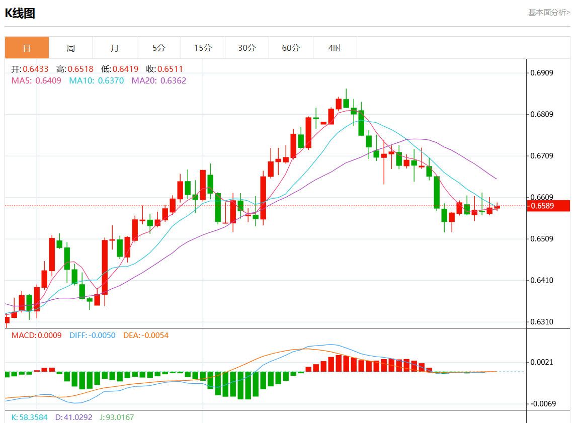 支撑位:0.6635 0.6620 0.6600