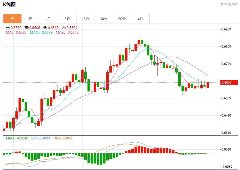今天的预期交易范围在0.6550支撑位和0.6650阻力位之间