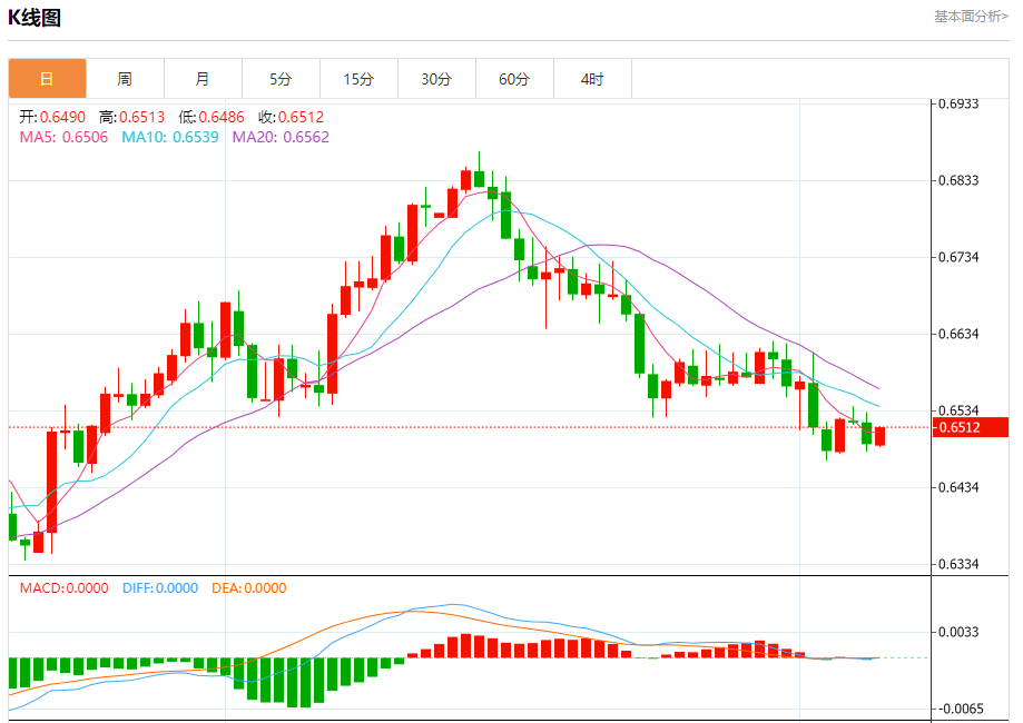 今天的预期交易范围在0.6440支撑位和0.6550阻力位之间