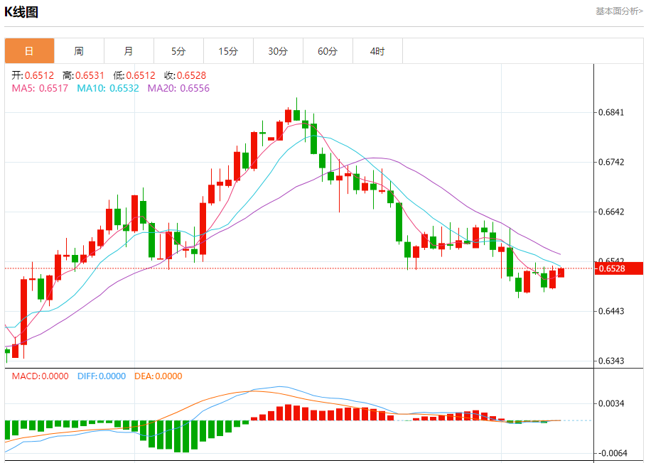 今天的预期交易范围在0.6480支撑位和0.6580阻力位之间
