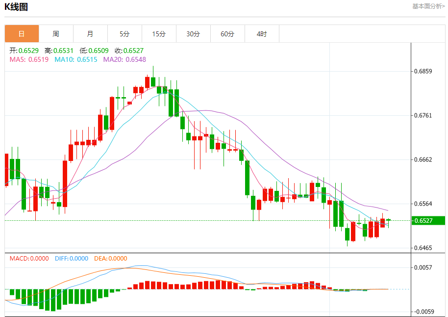 今天的预期交易范围在0.6480支撑位和0.6580阻力位之间